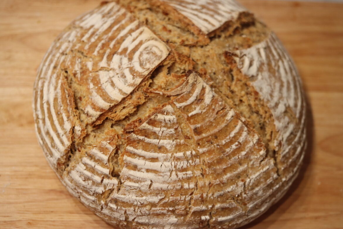 Das Rezept besteht aus einer Mischung aus Dinkel- und Hafermehl und dazu ein Quellstück aus Leinsamen, Chiasamen, Hanfsamen und Sonnenblumenkernen.